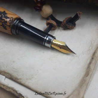 Stylo plume en bois de cerisier pyrogravé et personnalisable