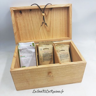Boîte pour sachets de graines en bois de châtaignier. 31x16,5x16,5cm env.