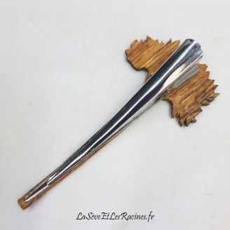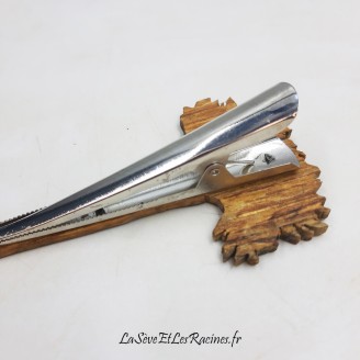 Barrette pince canard en bois de châtaignier pyrogravé arbre. PIÈCE UNIQUE