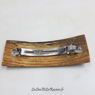 Barrette pince en bois de châtaignier, pyrogravé "champêtre".